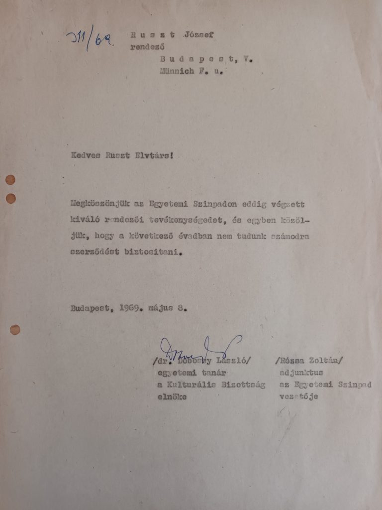 Keresés címkék alapján Jelölje ki a címké(ke)t! Keress 'AND' 'OR' uncheck all Ruszt József elbocsátása A sikerek dacára 1969-ben nem hosszabbították meg Ruszt József szerződését az Universitasnál.
