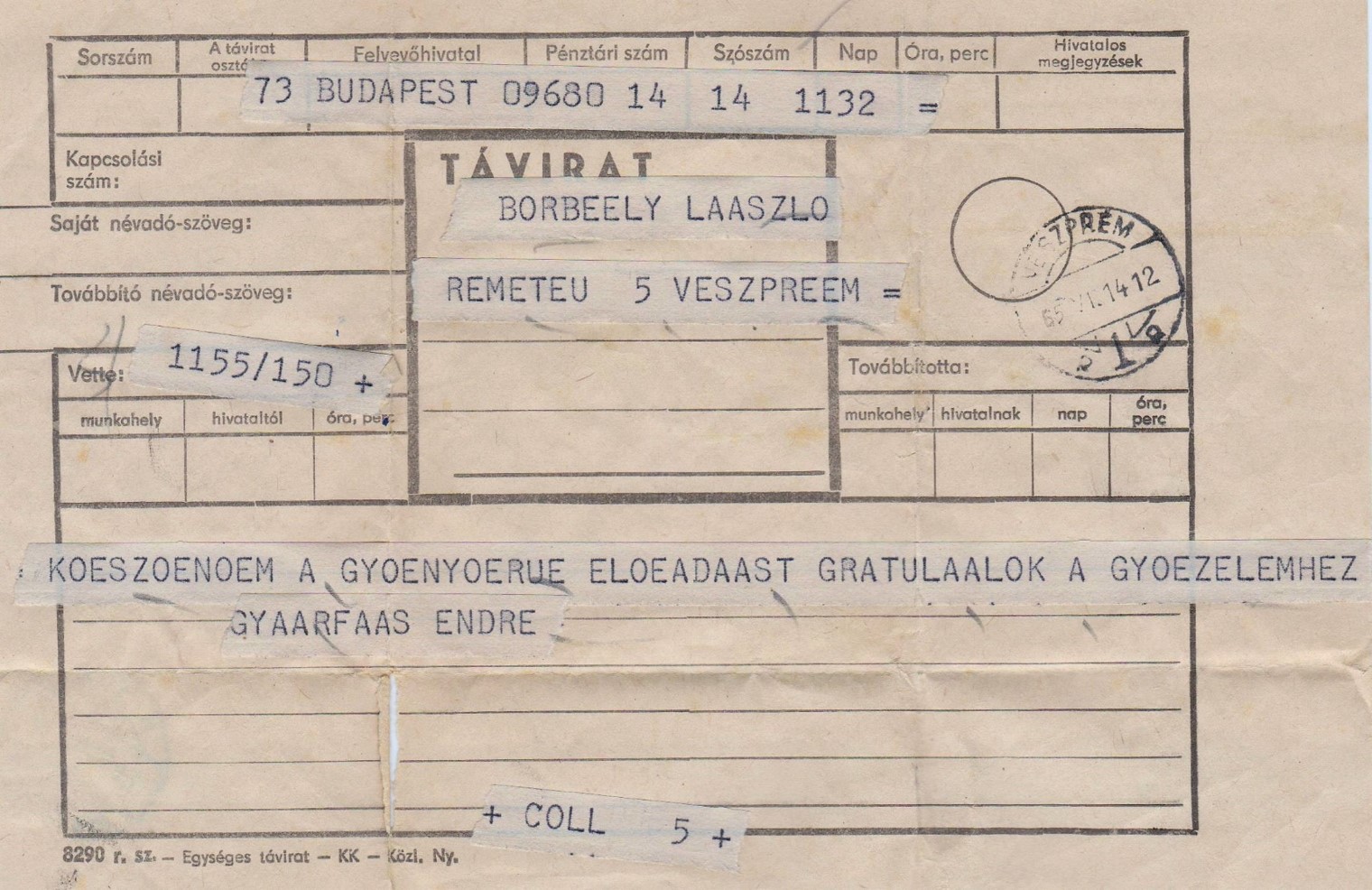 Keresés címkék alapján Jelölje ki a címké(ke)t! Keress 'AND' 'OR' uncheck all Gyárfás Endre író, költő távirata Borbély Lászlónak, melyben Borbély országos Ki mit tud? győzelméhez gratulál. forrás: Borbély Lászlóné Ibolya magánarchívuma