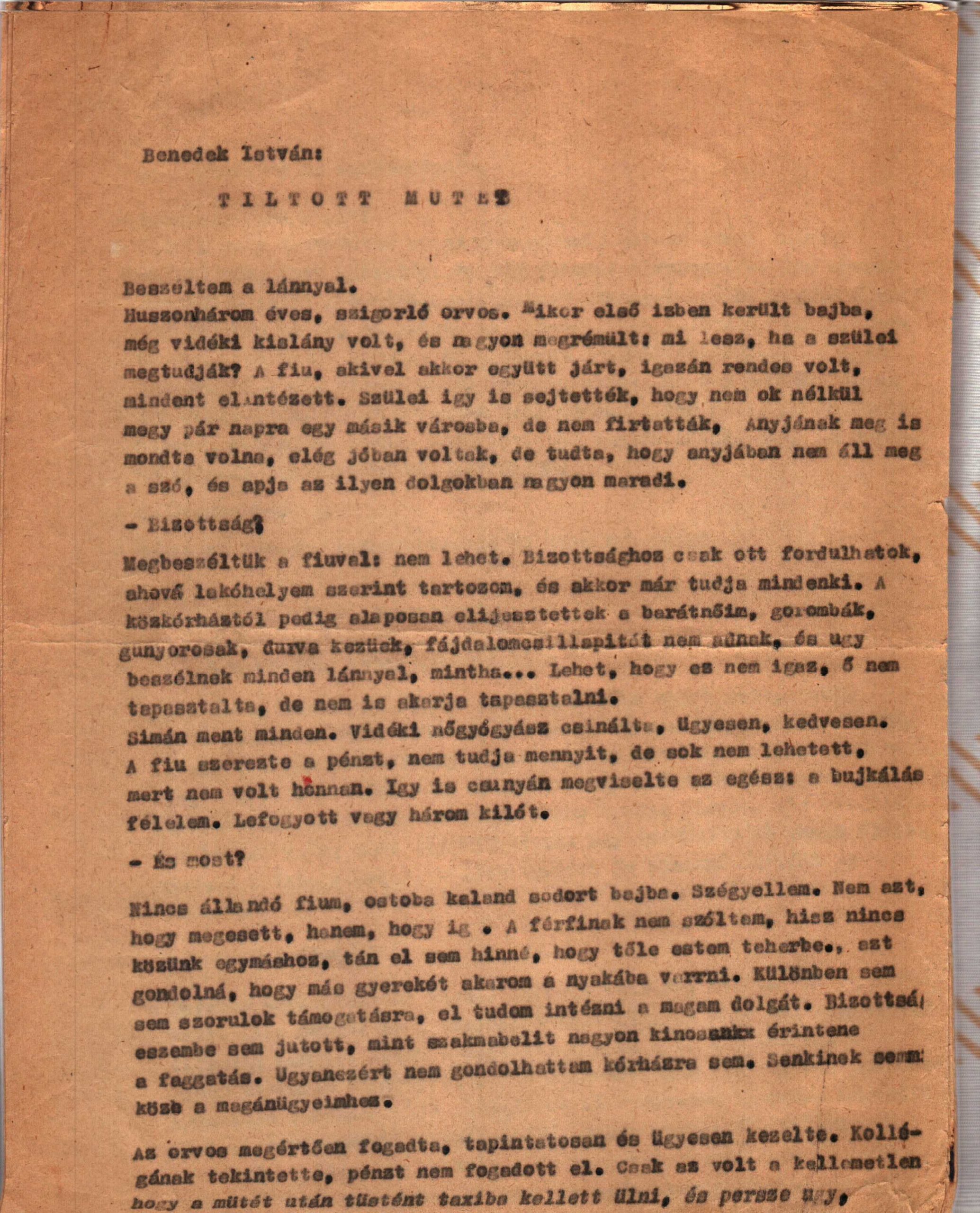 Keresés címkék alapján Jelölje ki a címké(ke)t! Keress 'AND' 'OR' uncheck all Részlet a Veszprém megyei Irodalmi Színpad Tiltott műtét című előadásának szövegkönyvéből forrás: Borbély Lászlóné Ibolya magánarchívuma