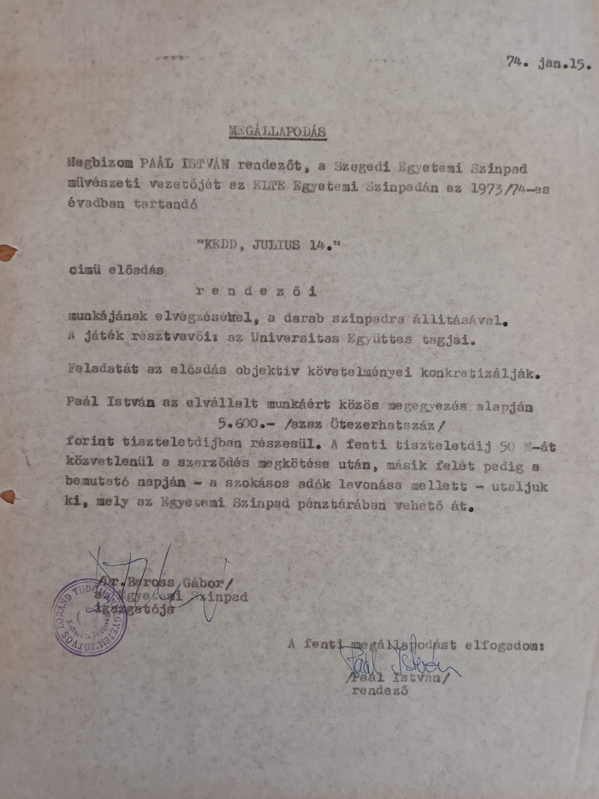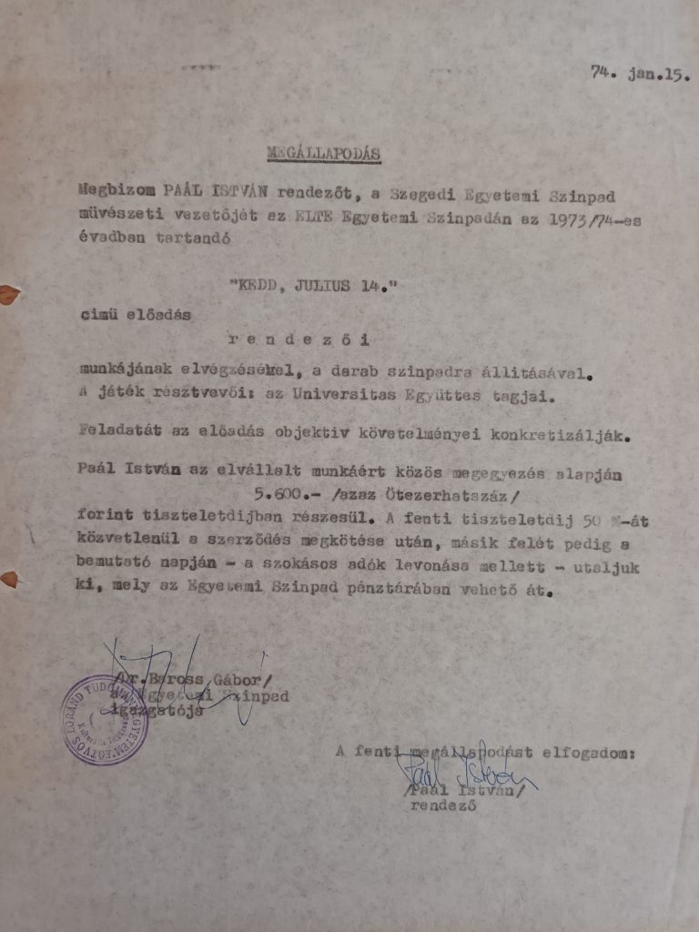 Mivel Ruszt Józsefet lekötötték párhuzamos debreceni teendői és kevesebb bemutatót tudott vállalni, Paál Istvánt hívták az Universitashoz. Összesen három darabot rendezett, ezt követően már csak tréningek tartását engedélyezték számára, míg végül felmondott.
